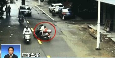 A 5-year-old boy tried on a motorcycle out of curiosity and crashed him and his younger brother into a truck afterward in Wuhua, Guangdong Province.