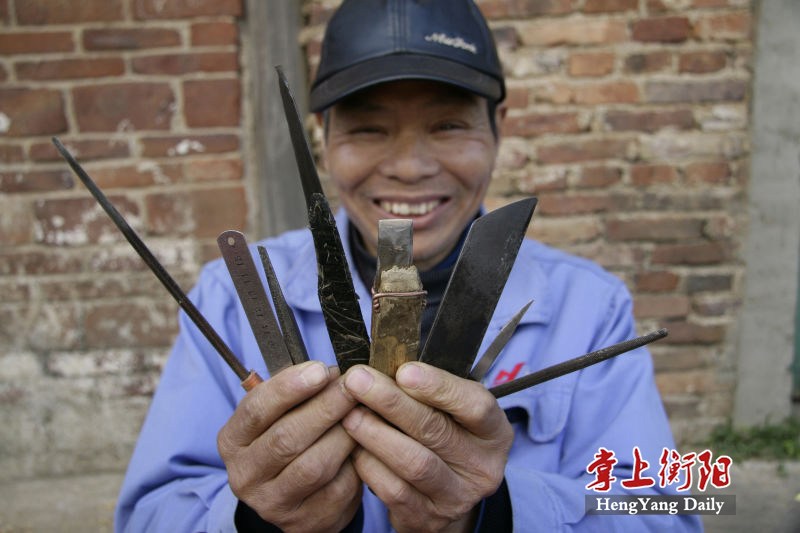 Feng Shuyuan, the 67-year-old, was a retired worker from a tractor plant. He has never learned any professional carpentry skills. He has used abandoned grater, saw and hand-sewing needles as his carving tools.